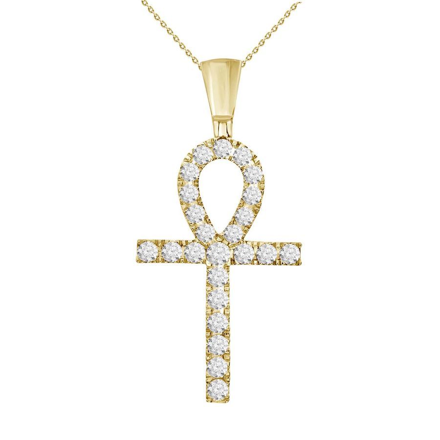 MEN’S CROSS 1.50CT ROUND DIAMOND 14K YELLOW GOLD