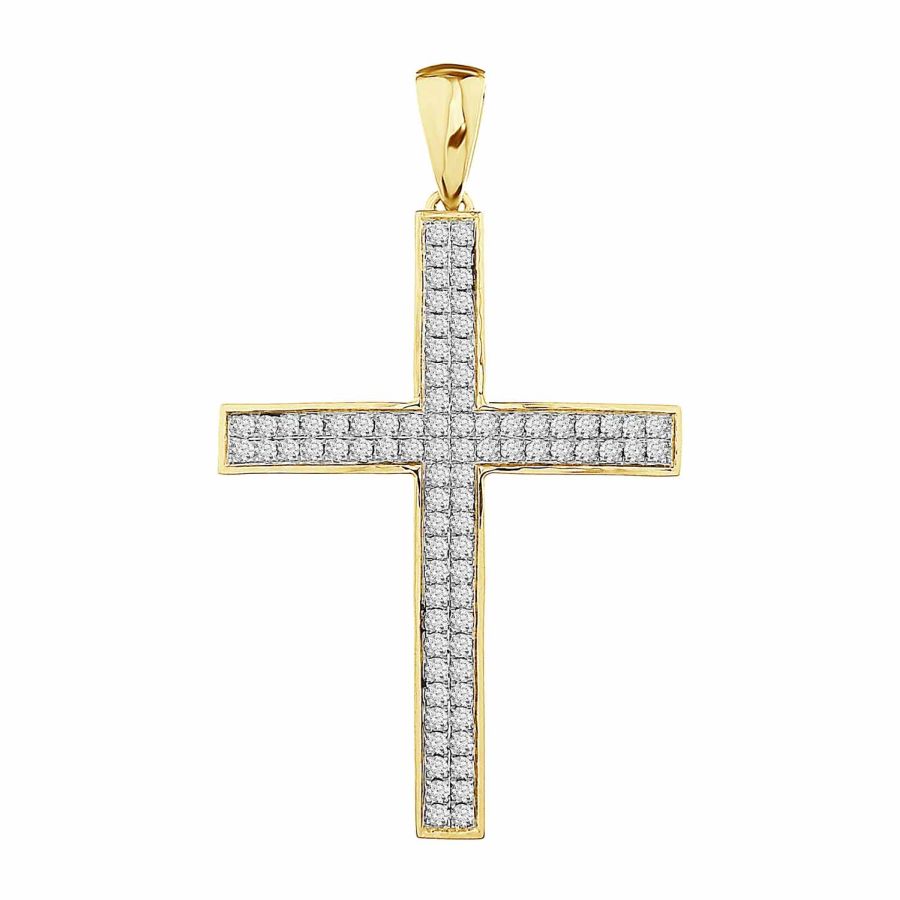MEN’S CROSS 3.00CT ROUND DIAMOND 10K YELLOW GOLD
