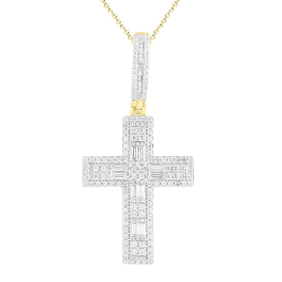 MEN’S CROSS CHARM 1.00CT ROUND/BAGUETTE DIAMOND 10K YELLOW GOLD