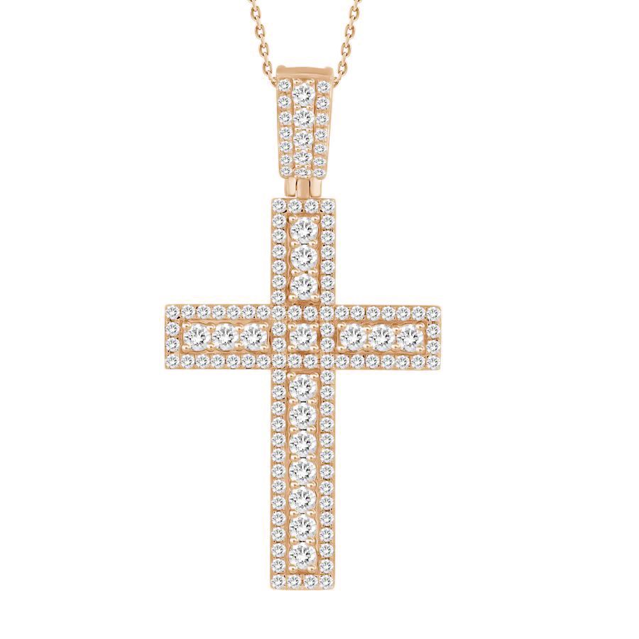 MEN’S CROSS CHARM 3.30CT ROUND DIAMOND 10K WHITE/ROSE GOLD