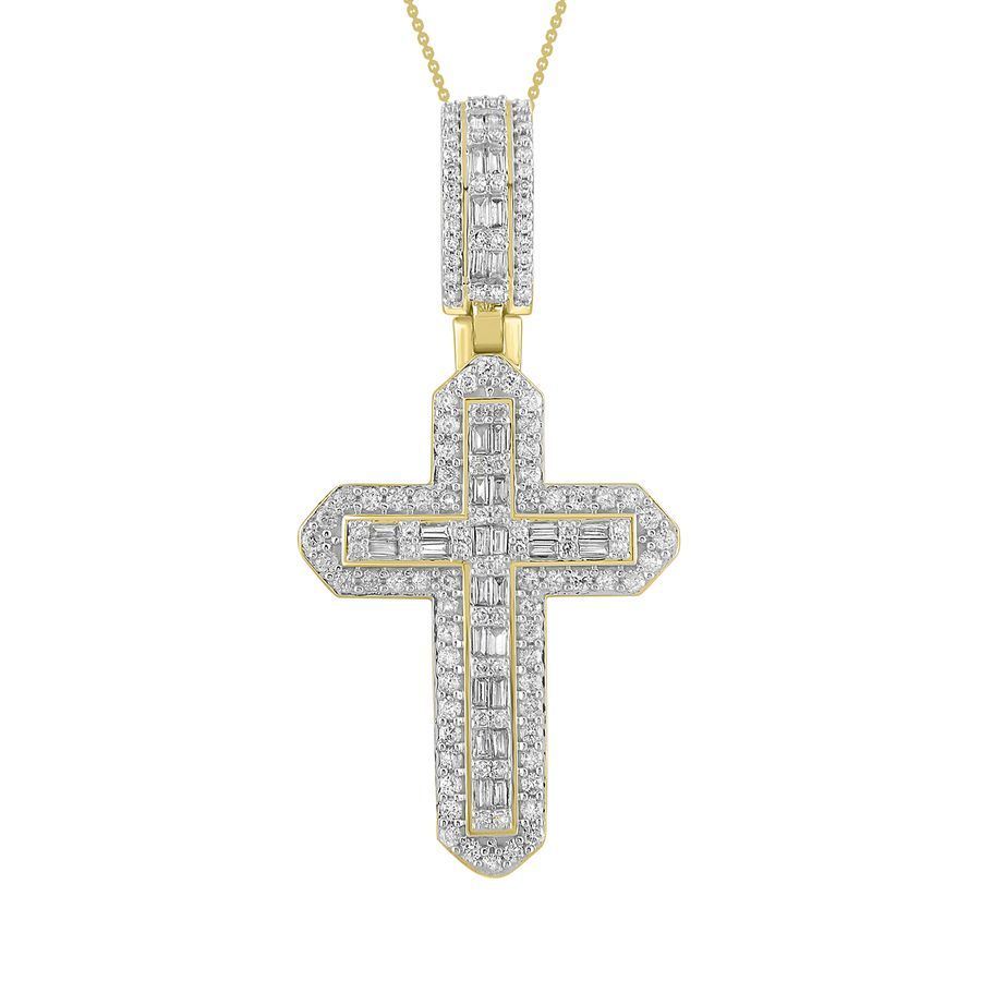 MEN’S CROSS PENDANT 1.00CT ROUND/BAGUETTE DIAMOND 14K YELLOW GOLD