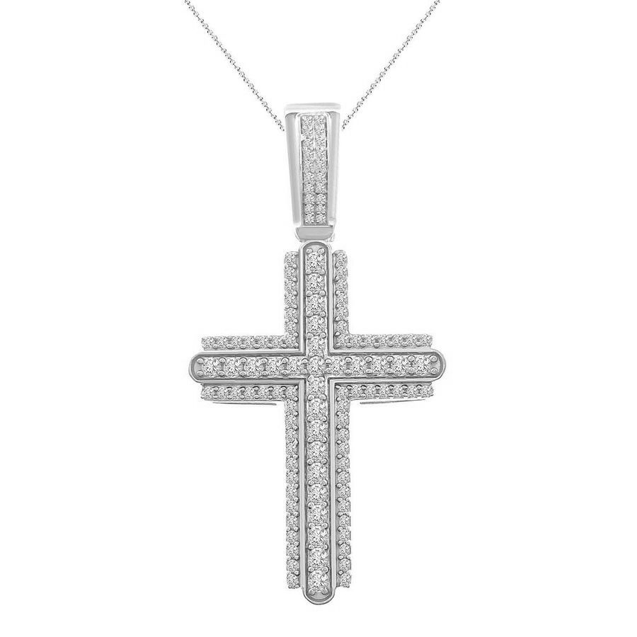 MEN’S CROSS PENDANT 1.00CT ROUND DIAMOND 14K WHITE GOLD