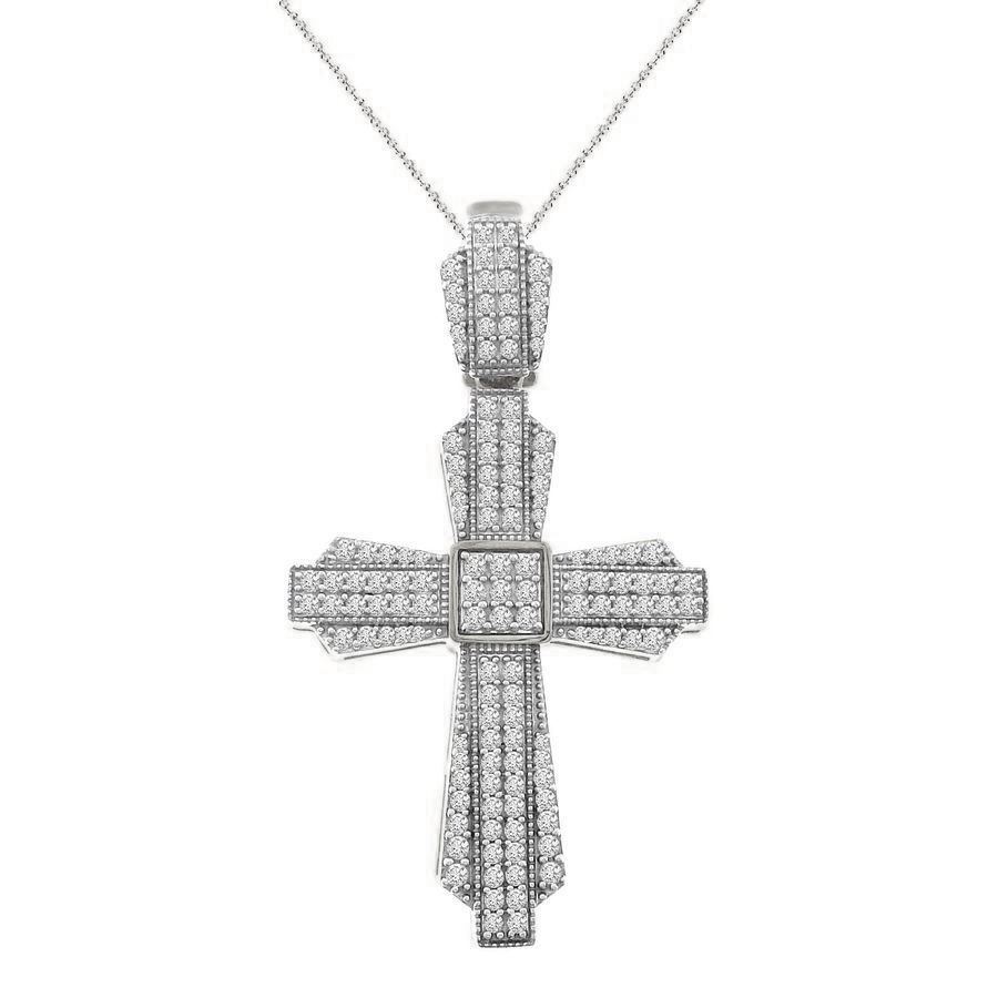 MEN’S CROSS PENDANT 1.00CT ROUND DIAMOND 14K WHITE GOLD