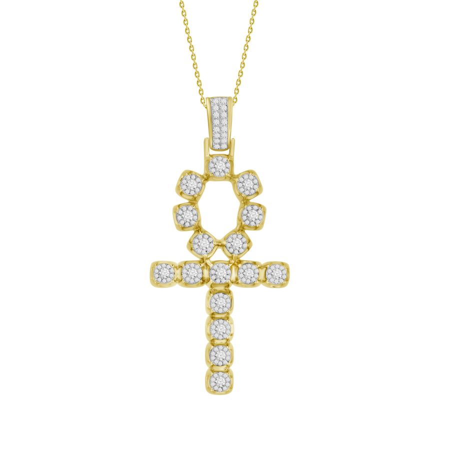 MEN’S CROSS PENDANT 1.70CT ROUND DIAMOND 14K YELLOW GOLD