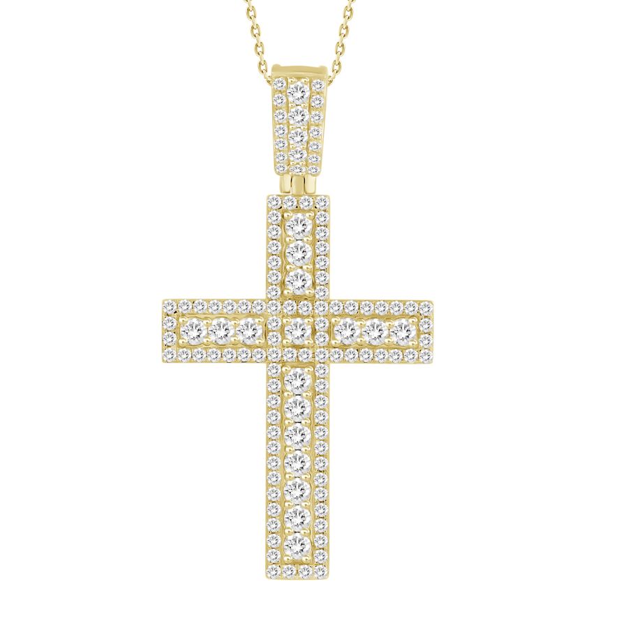 MEN’S CROSS PENDANT 3.30CT ROUND DIAMOND 14K YELLOW GOLD