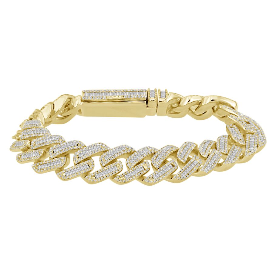 MEN’S BRACELET 2.60CT ROUND/BAGUETTE DIAMOND 10K YELLOW GOLD