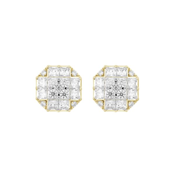 MEN’S EARRINGS 1 3/4CT ROUND/PRINCESS DIAMOND 14K YELLOW GOLD