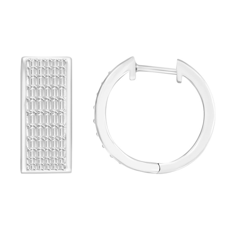 MEN’S HOOP EARRINGS 0.75CT BAGUETTE DIAMOND 10K WHITE GOLD