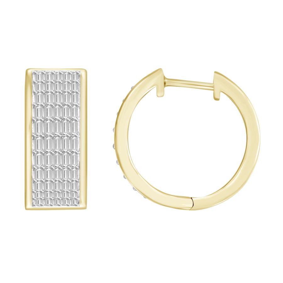 MEN’S HOOP EARRINGS 0.75CT BAGUETTE DIAMOND 10K YELLOW GOLD