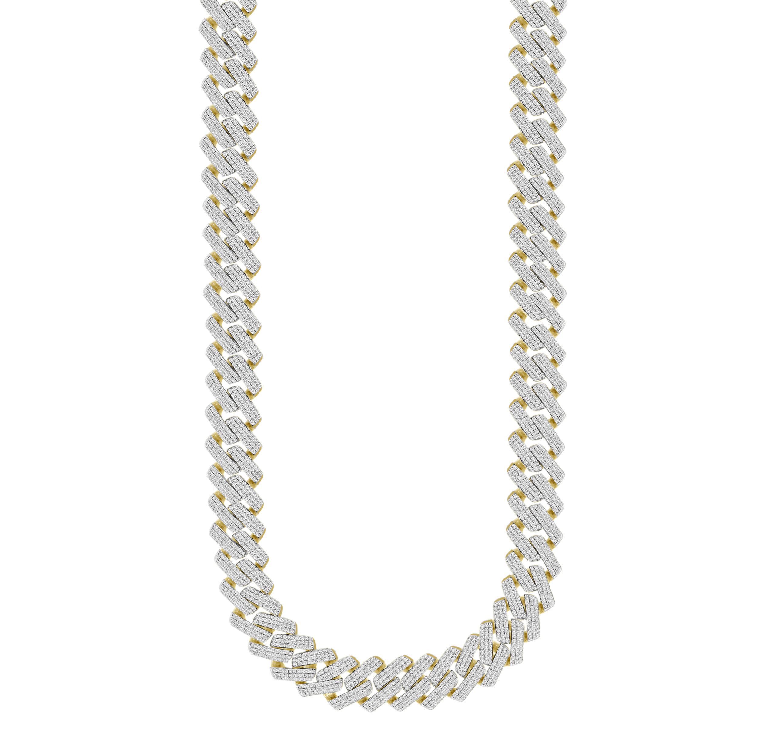 MEN’S NECKLACE 13.05CT ROUND DIAMOND 10K YELLOW GOLD