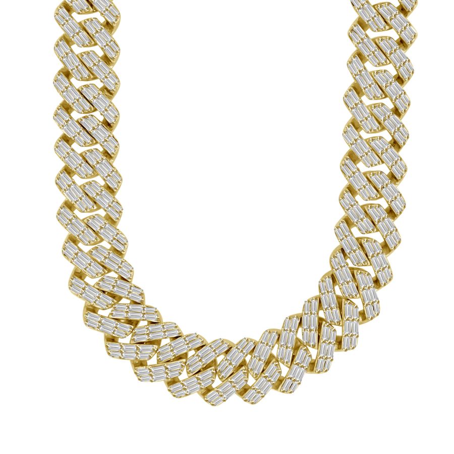 MEN’S NECKLACE 13.50CT BAGUETTE DIAMOND 10K YELLOW GOLD