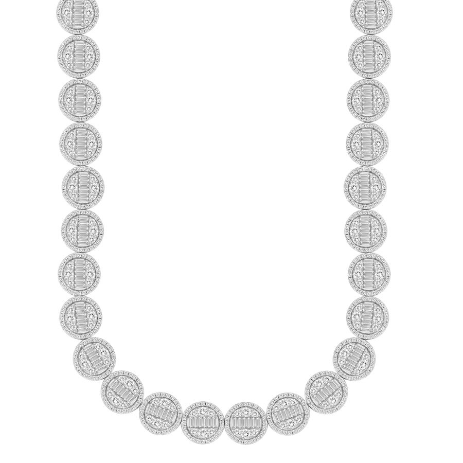 MEN’S NECKLACE 14.00CT ROUND/BAGUETTE DIAMOND 10K WHITE GOLD