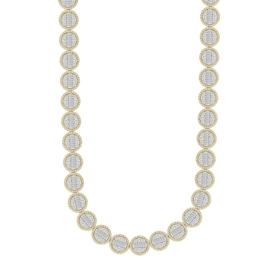 MEN’S NECKLACE 14.00CT ROUND/BAGUETTE DIAMOND 14K YELLOW GOLD