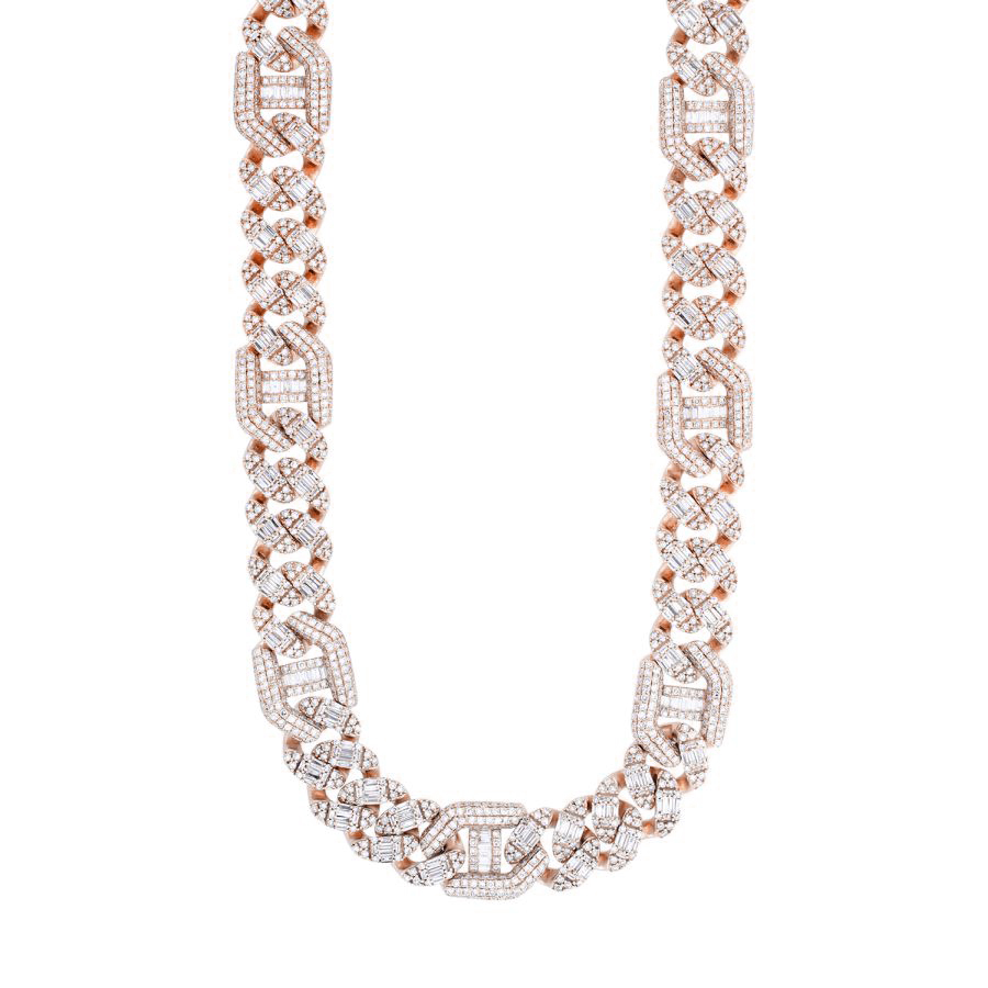 MEN’S NECKLACE 23.80CT ROUND/BAGUETTE DIAMOND 10K WHITE/ROSE GOLD