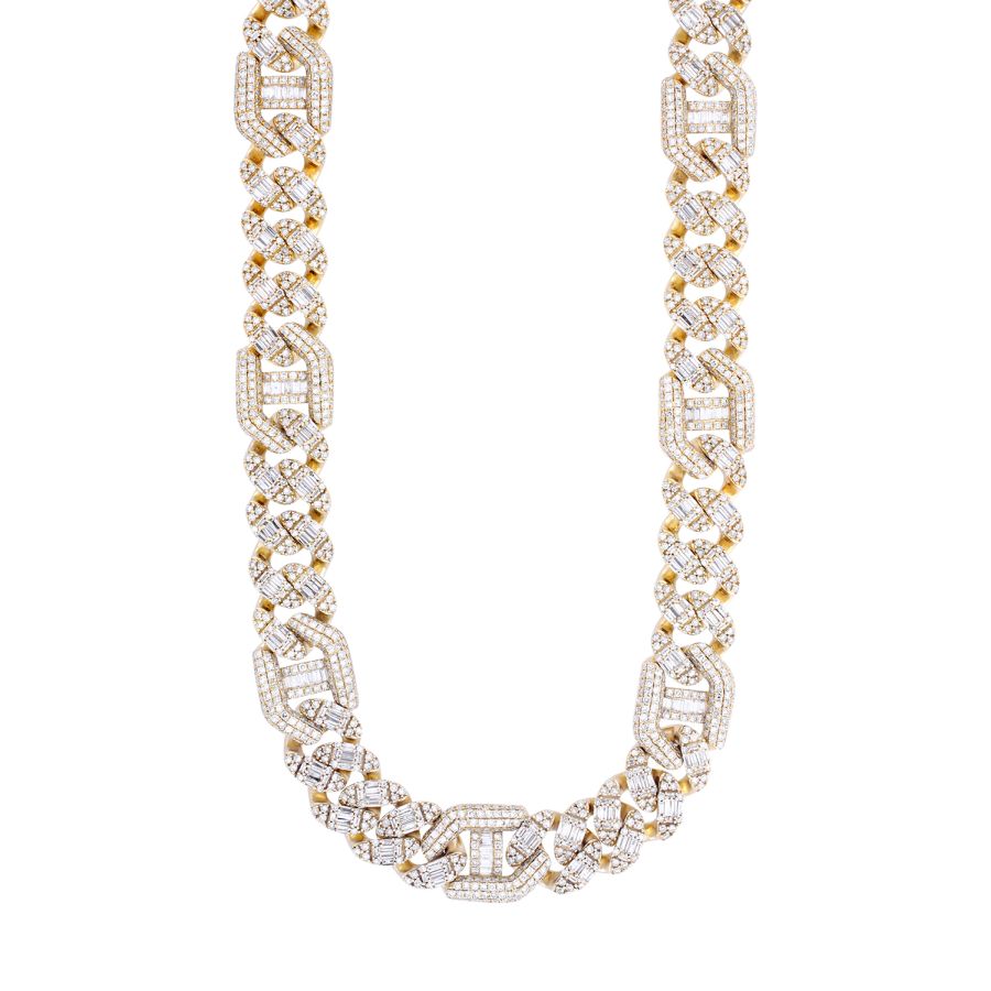 MEN’S NECKLACE 23.80CT ROUND/BAGUETTE DIAMOND 10K YELLOW GOLD