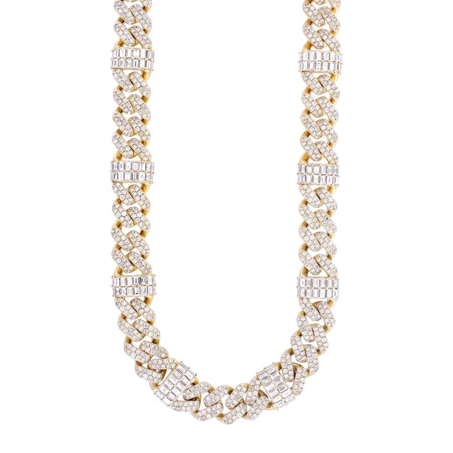 MEN’S NECKLACE 38.75CT ROUND/BAGUETTE DIAMOND 10K YELLOW GOLD