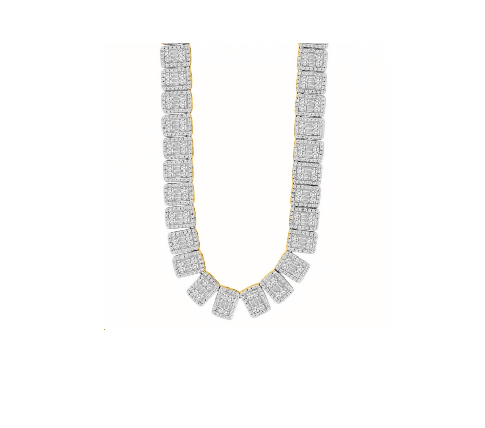 MEN’S NECKLACE 8.00CT ROUND/BAGUETTE DIAMOND 10K YELLOW GOLD