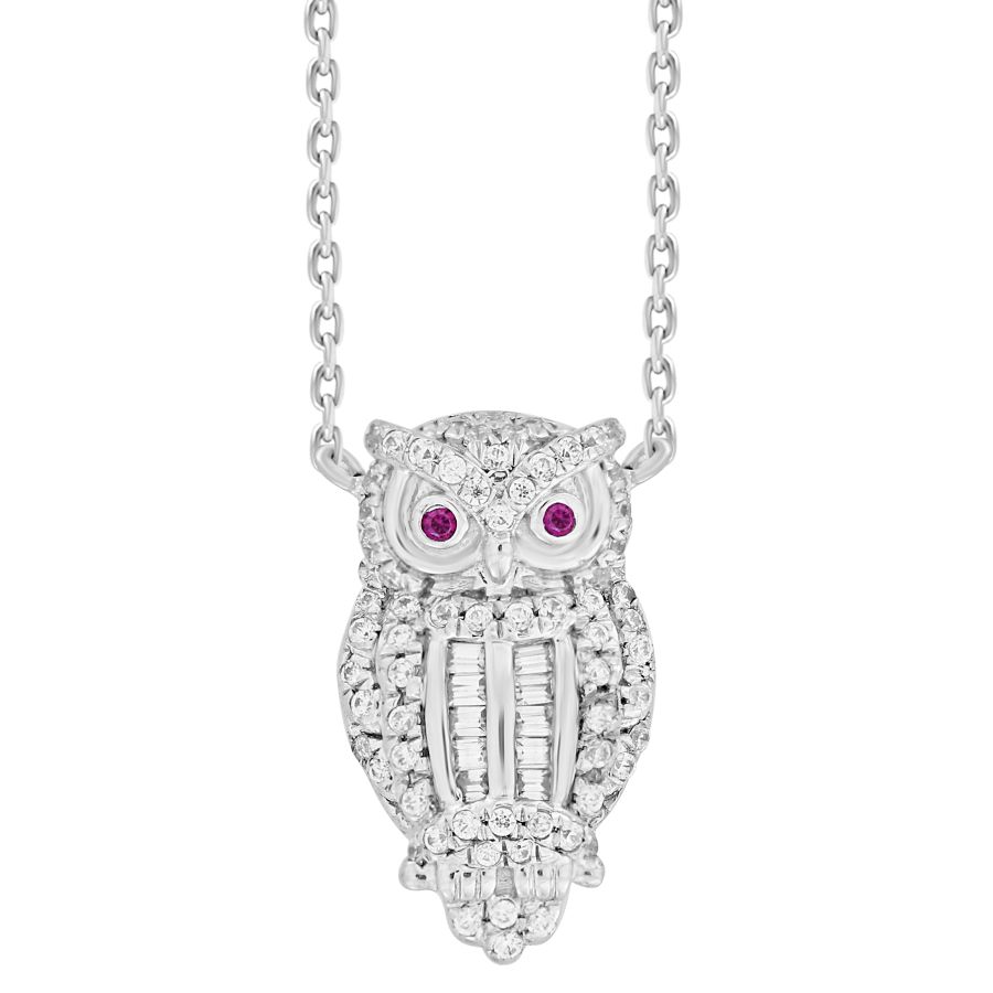 MEN’S PENDANT 0.20CT ROUND/BAGUETTE/RUBY DIAMOND 10K WHITE GOLD