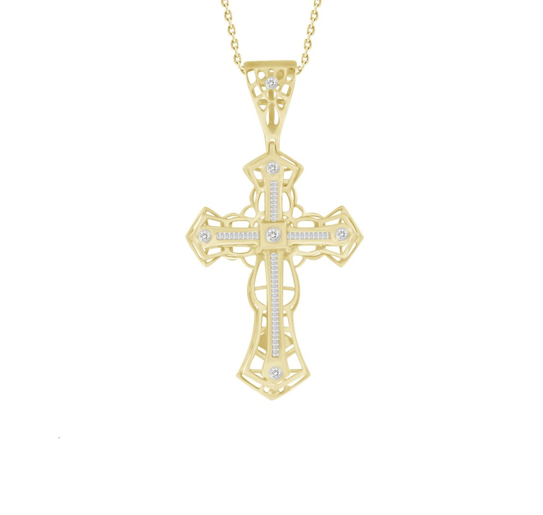 MEN’S PENDANT 0.50CT ROUND/BAGUETTE DIAMOND 14K YELLOW GOLD