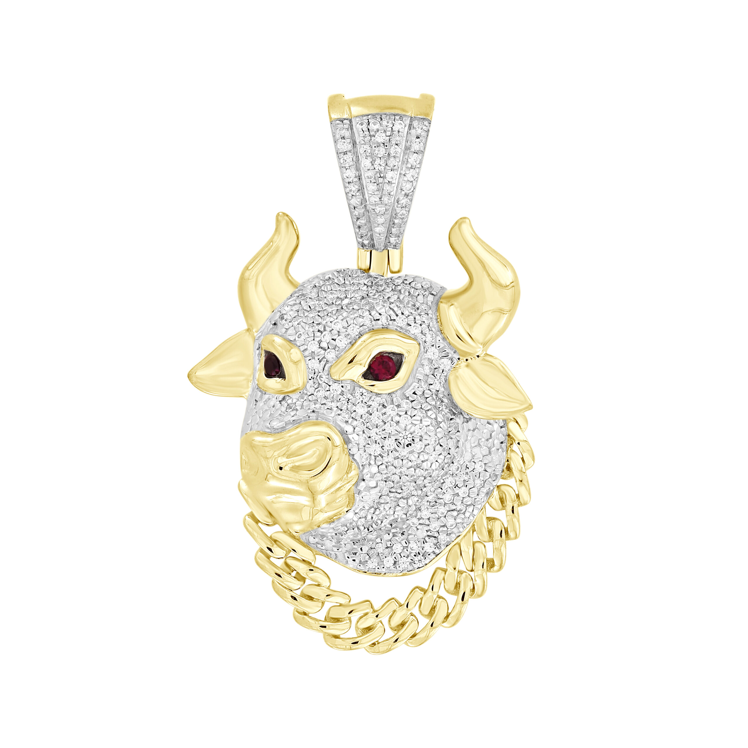 MEN’S PENDANT 0.50CT ROUND/RUBY DIAMOND 10K YELLOW GOLD