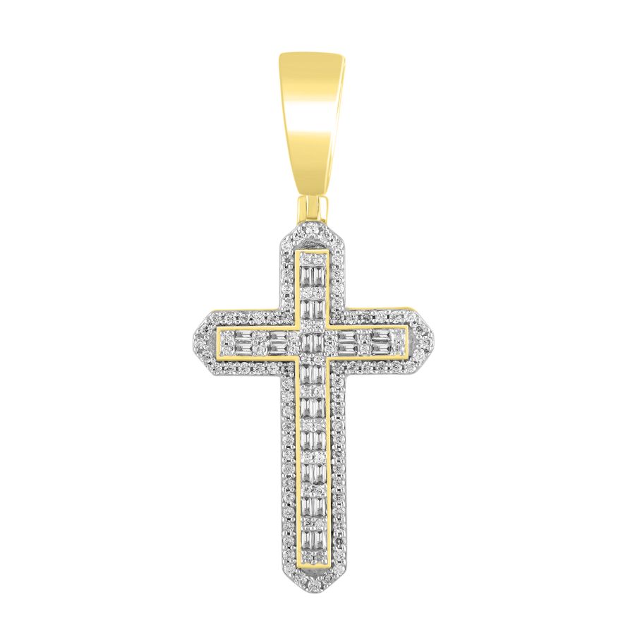 MEN’S PENDANT 0.75CT ROUND/BAGUETTE DIAMOND 10K YELLOW GOLD