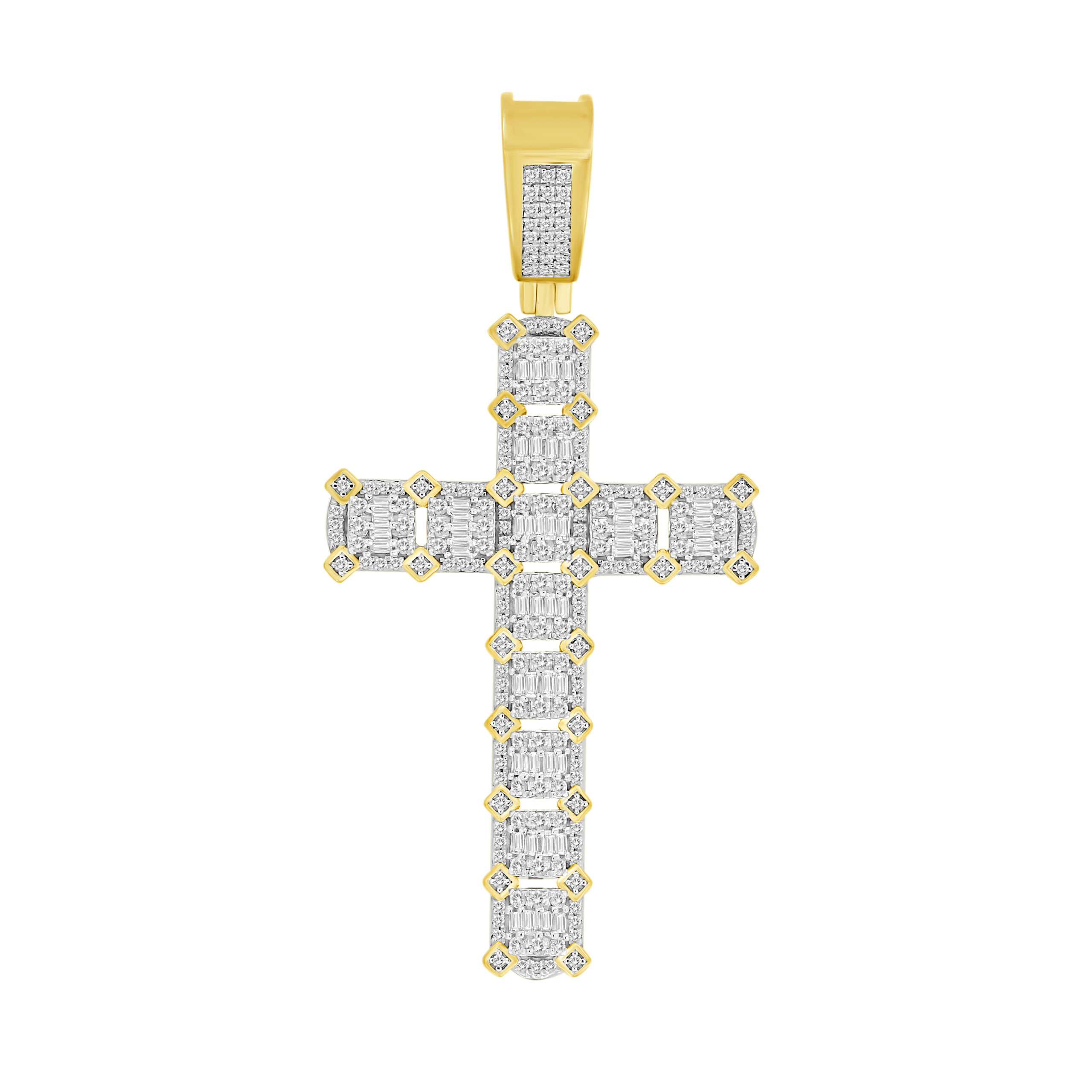 MEN'S PENDANT 2.50CT ROUND/BAGUETTE DIAMOND 10K YELLOW GOLD