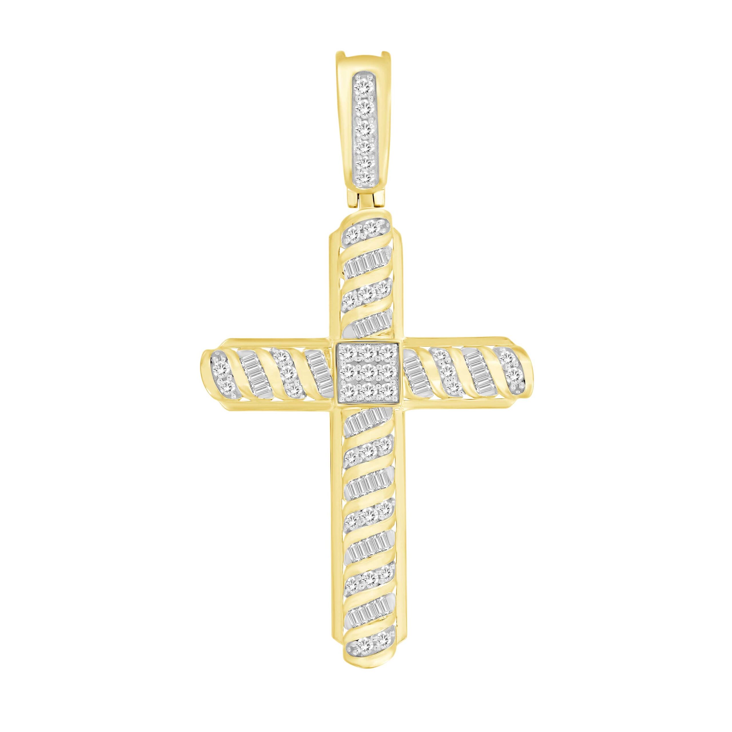 MEN’S CROSS CHARM 1.00CT ROUND/BAGUETTE DIAMOND 10K YELLOW GOLD