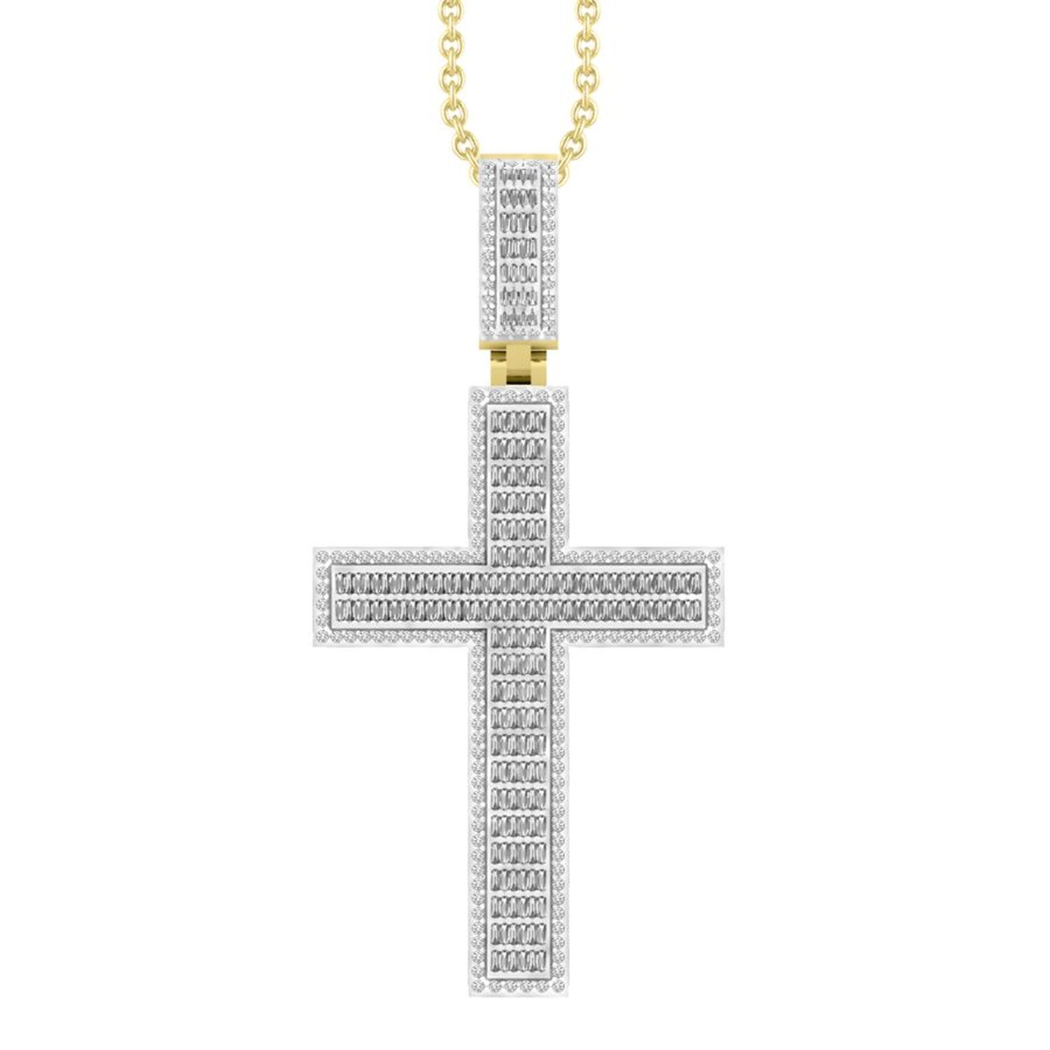 MEN’S CROSS CHARM 1.00CT ROUND/BAGUETTE DIAMOND 10K YELLOW GOLD