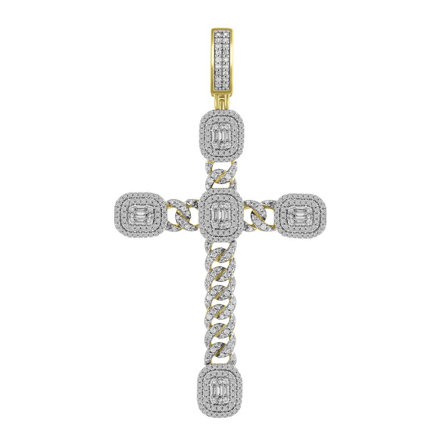 MEN’S PENDANT 2.00CT ROUND/BAGUETTE DIAMOND 10K YELLOW GOLD