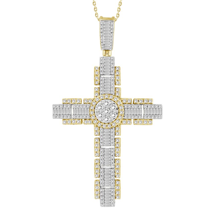 MEN’S PENDANT 2.00CT ROUND/BAGUETTE DIAMOND 14K YELLOW GOLD