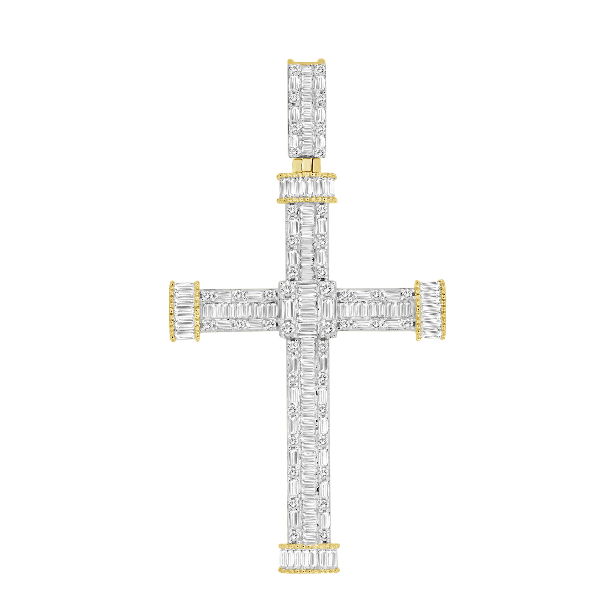 MEN’S PENDANT 2.50CT ROUND/BAGUETTE DIAMOND 10K YELLOW GOLD