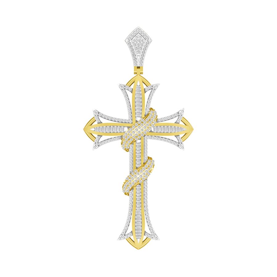 MEN'S PENDANT CHARM 1.00CT ROUND/BAGUETTE DIAMOND 10K YELLOW GOLD
