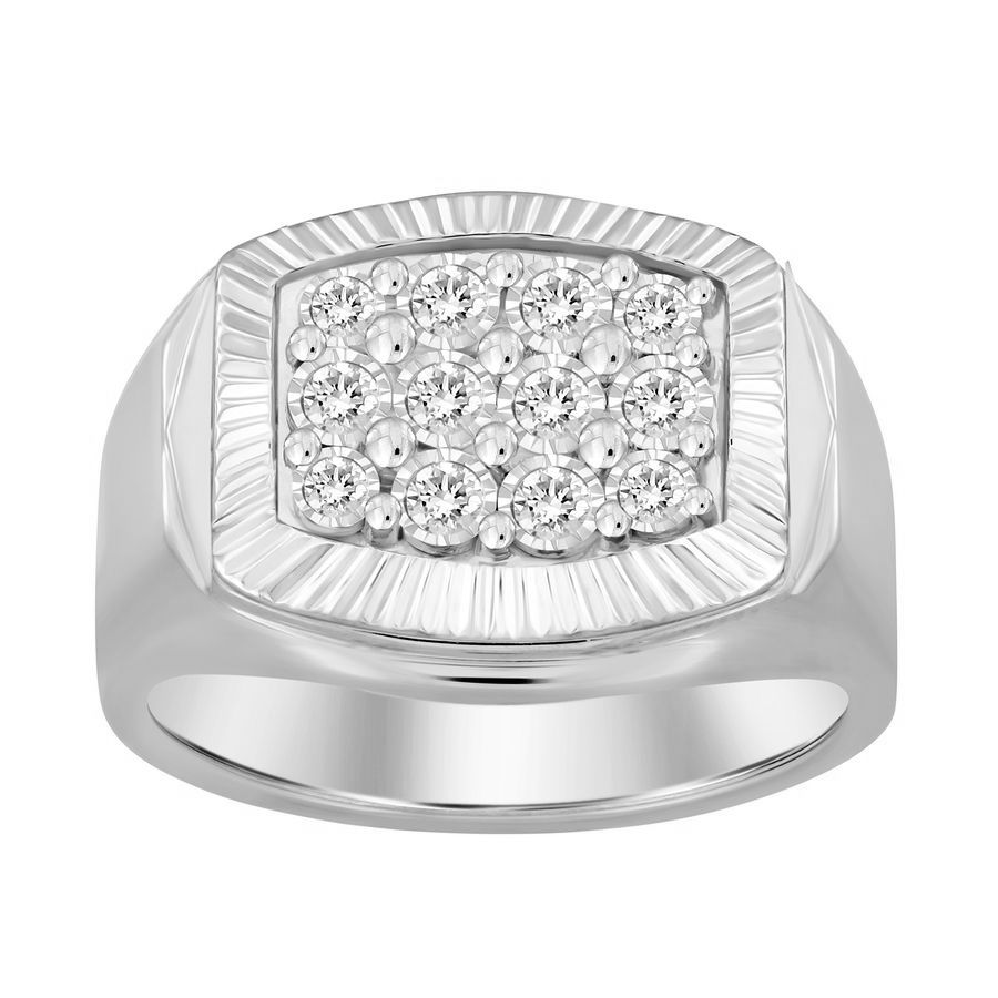 MEN’S RING 0.25CT ROUND DIAMOND 10K WHITE GOLD