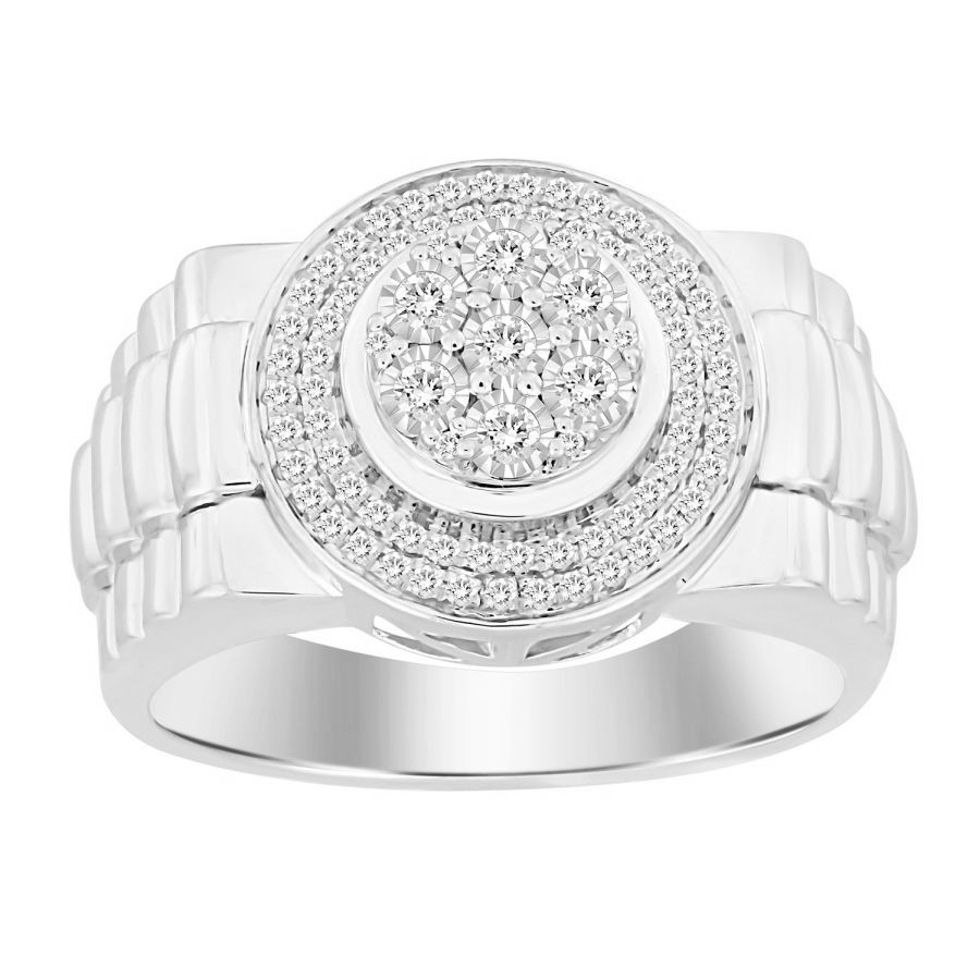 MEN’S RING 0.25CT ROUND DIAMOND 10K WHITE GOLD