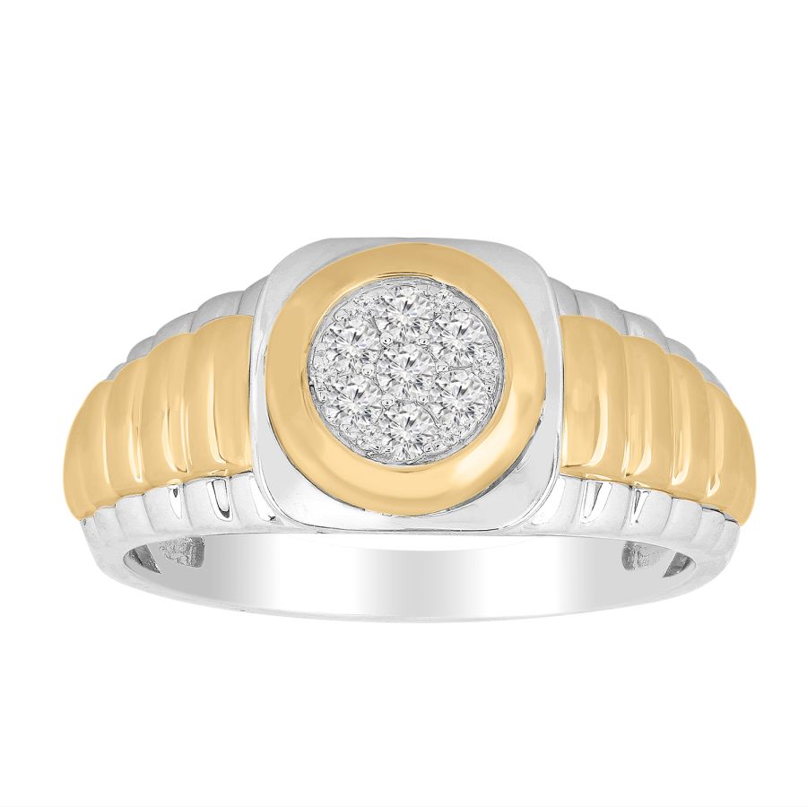 MEN’S RING 0.25CT ROUND DIAMOND 10K WHITE/YELLOW GOLD