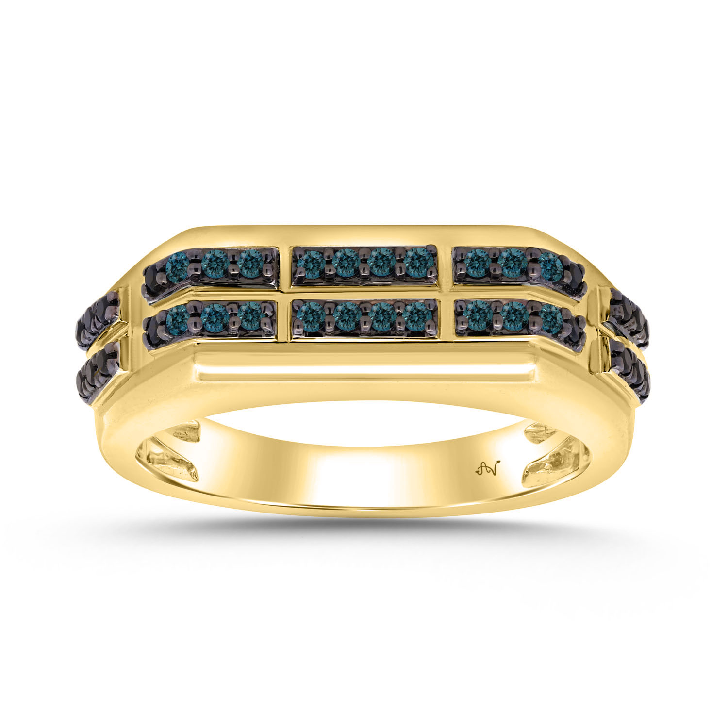 MEN'S RING 0.33CT ROUND BLACK/ROUND BLUE DIAMOND 10K YELLOW GOLD