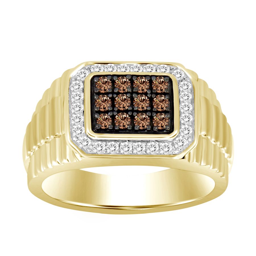 MEN’S RING 0.50CT ROUND DARK BROWN DIAMOND 14K YELLOW GOLD