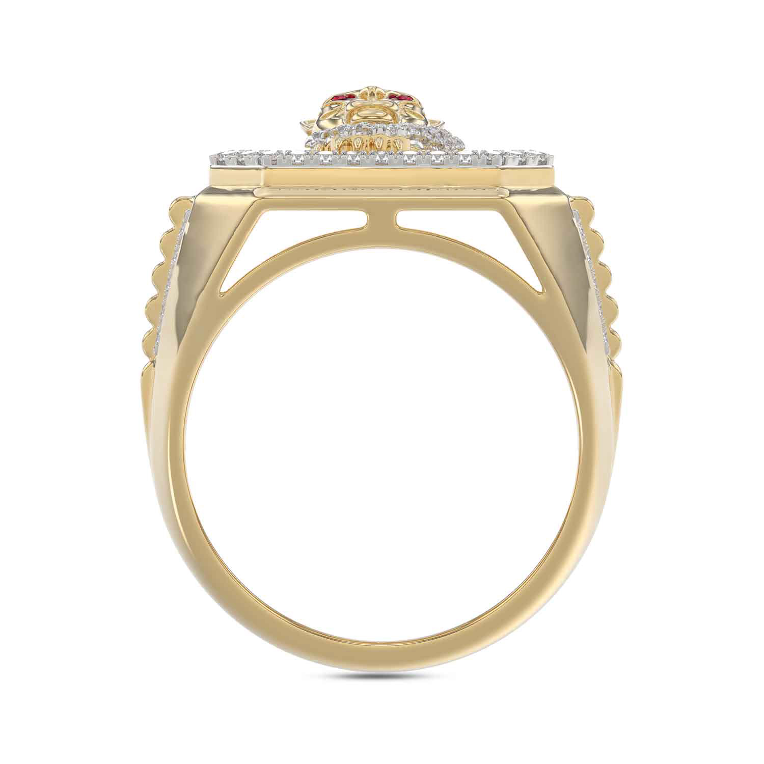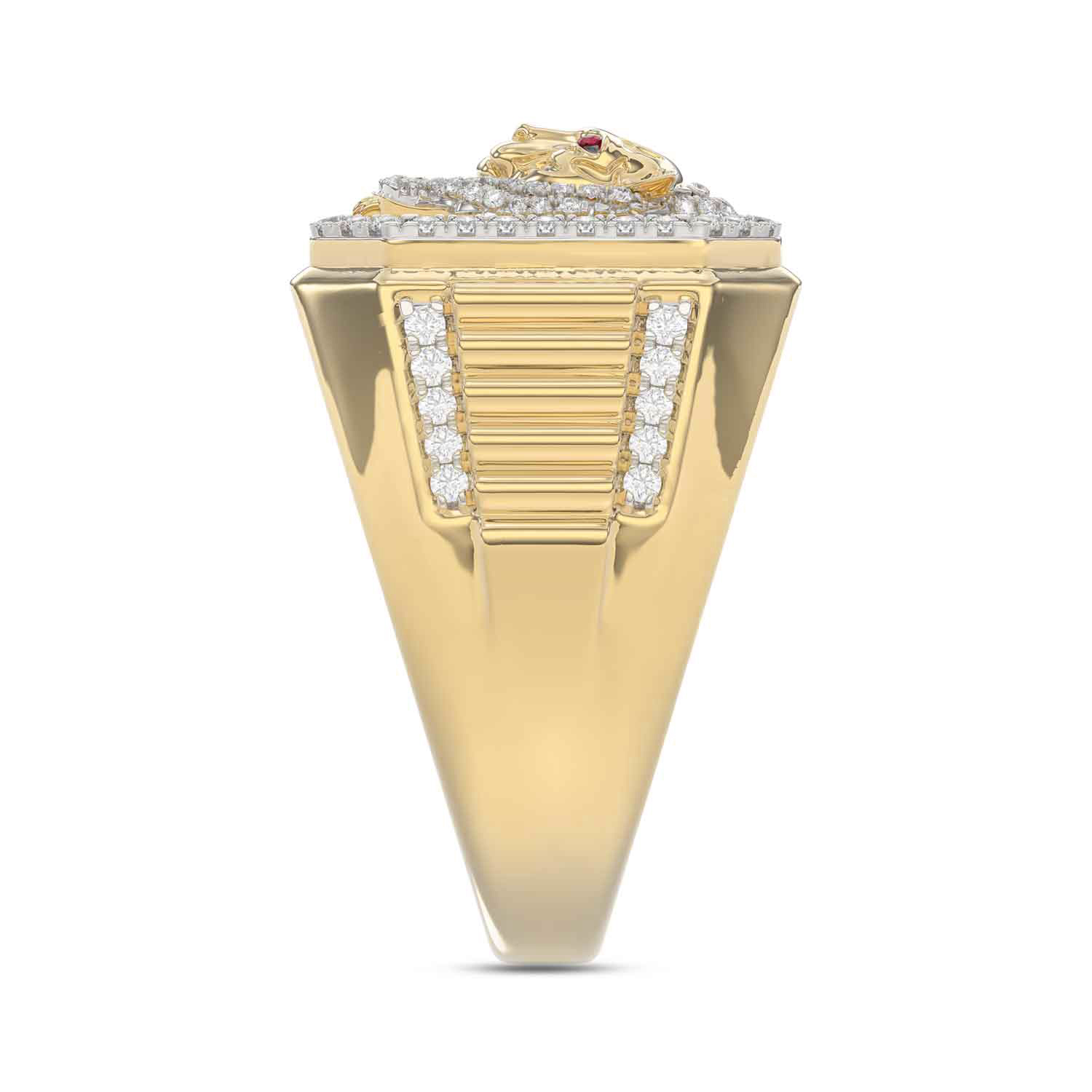 MEN’S RING 0.62CT ROUND RUBY DIAMOND 10K YELLOW GOLD