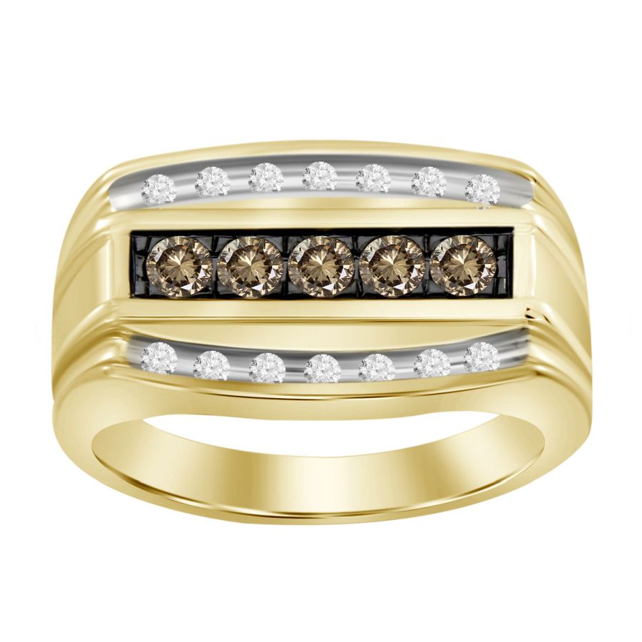 MEN'S RING 0.65CT ROUND DARK BROWN DIAMOND 10K YELLOW GOLD