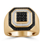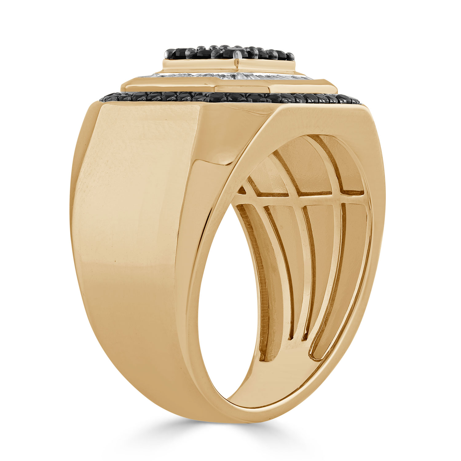 MEN’S RING 1.00CT BAGUETTE/ROUND BLACK DIAMOND 10K YELLOW GOLD
