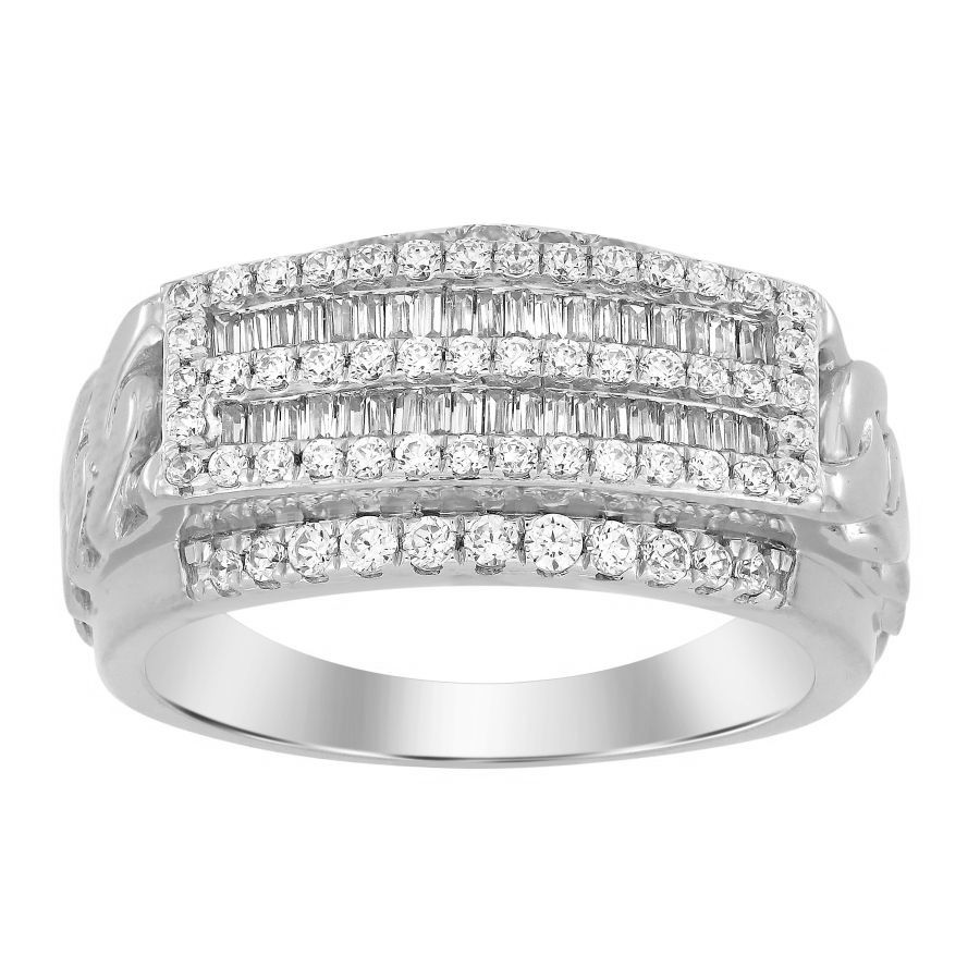 MEN’S RING 1.00CT ROUND/BAGUETTE DIAMOND 10K WHITE GOLD