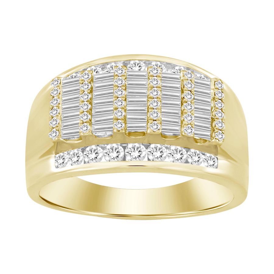 MEN’S RING 1.00CT ROUND/BAGUETTE DIAMOND 10K YELLOW GOLD