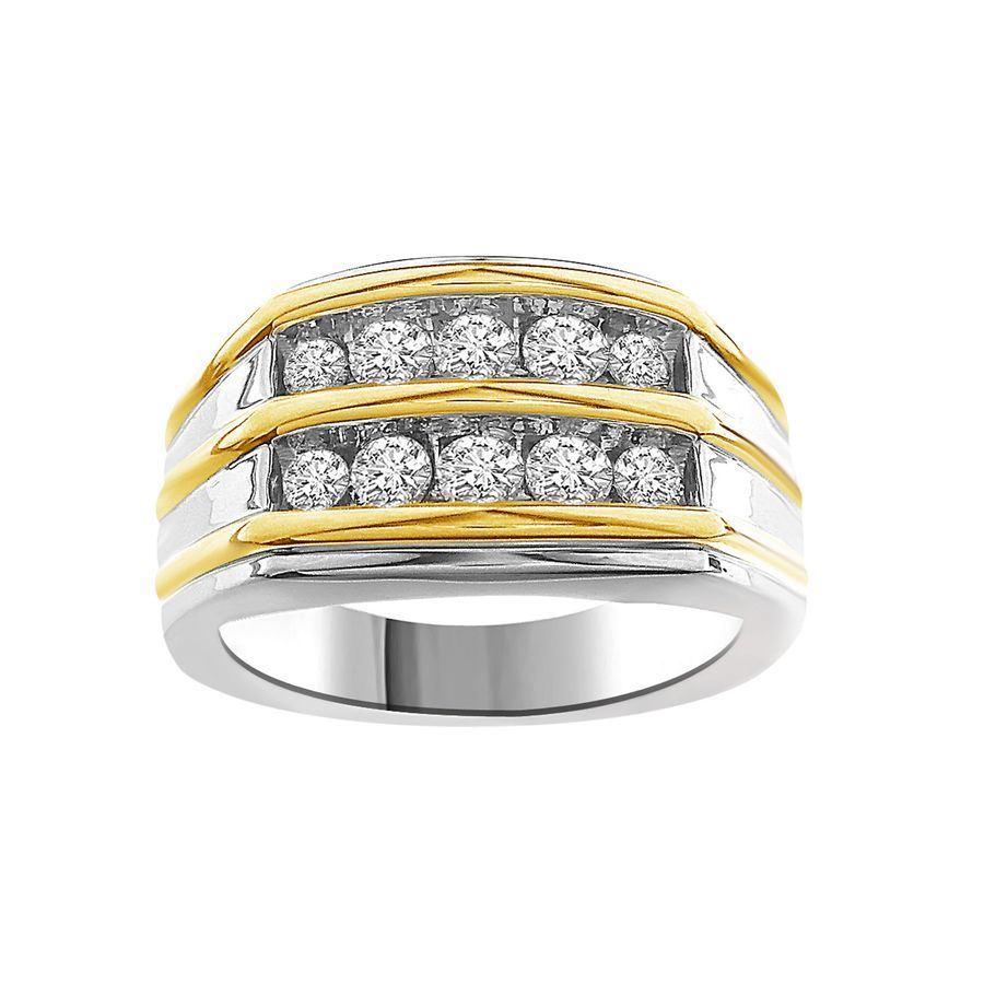 MEN’S RING 1.00CT ROUND DIAMOND 10K WHITE/YELLOW GOLD