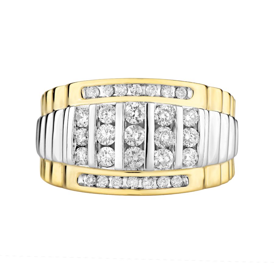 MEN’S RING 1.00CT ROUND DIAMOND 10K WHITE/YELLOW GOLD