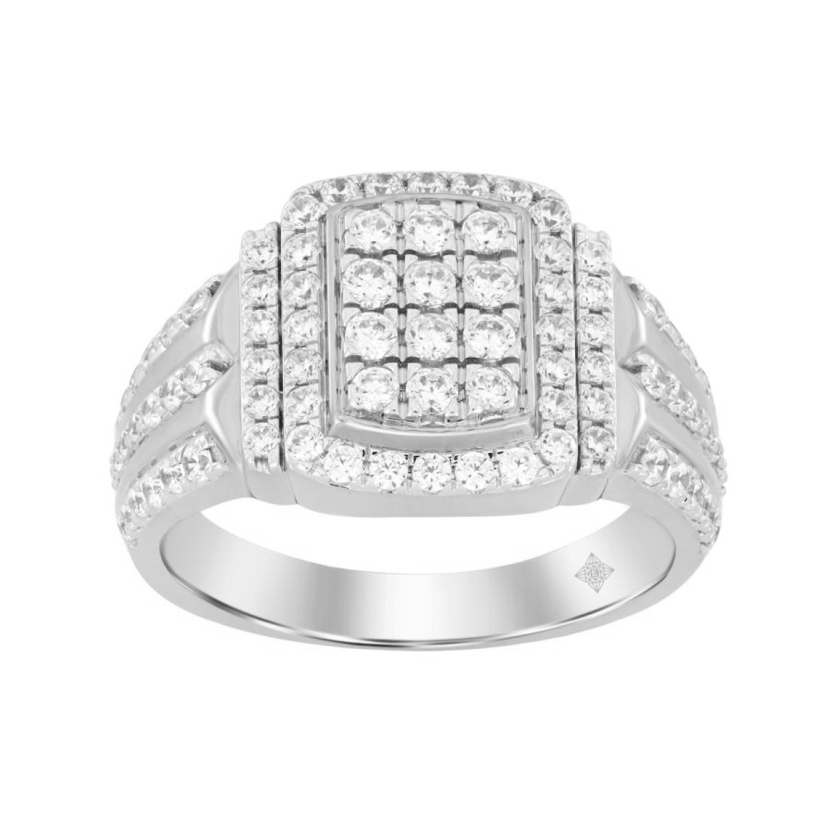 MEN’S RING 1 1/4CT ROUND DIAMOND 14K WHITE GOLD
