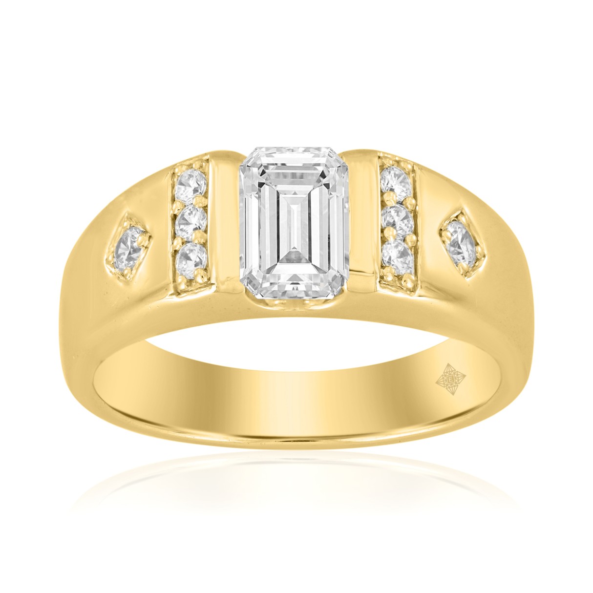 MEN’S RING 1 3/4CT EMERALD/ROUND DIAMOND 14K YELLOW GOLD (CENTER STONE EMERALD DIAMOND 1 1/2CT )