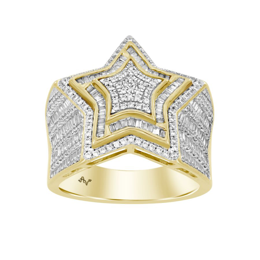 MEN’S RING 1.50CT ROUND/BAGUETTE DIAMOND 10K YELLOW GOLD