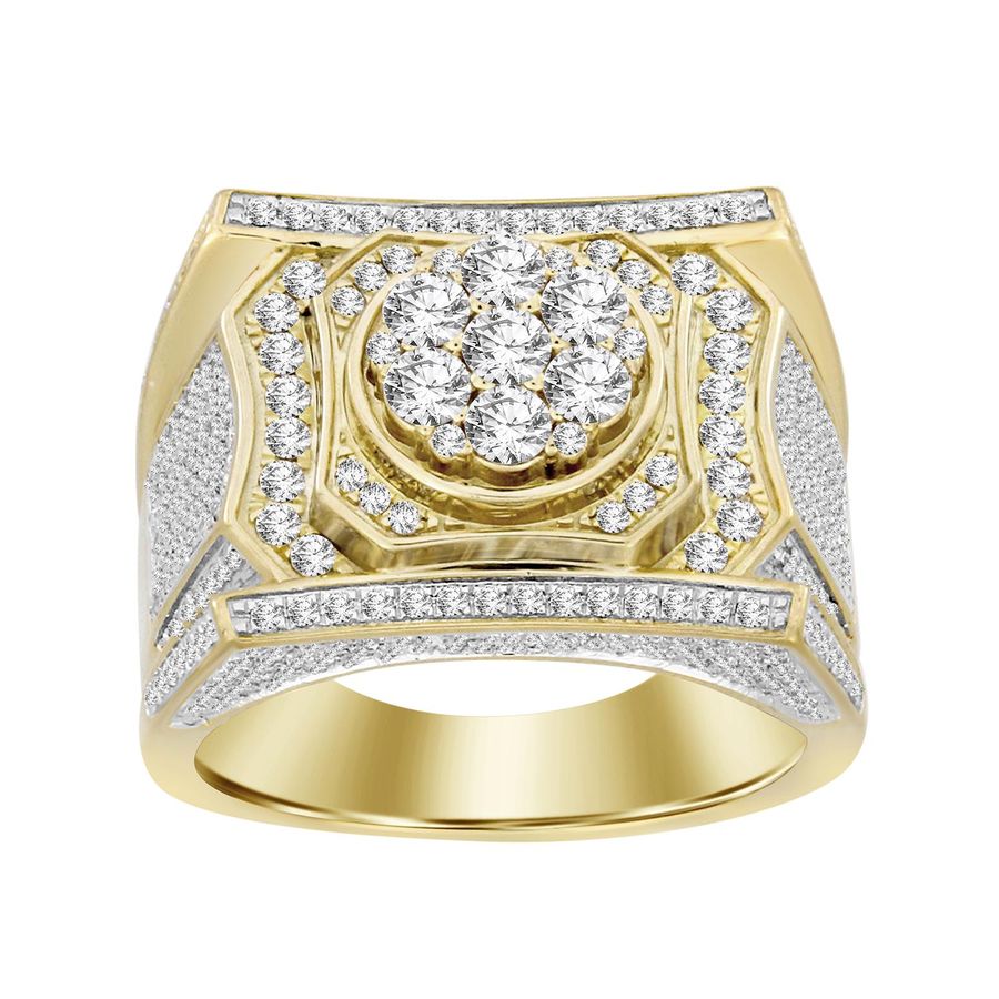 MEN'S RING 3.50CT ROUND DIAMOND 10K YELLOW GOLD