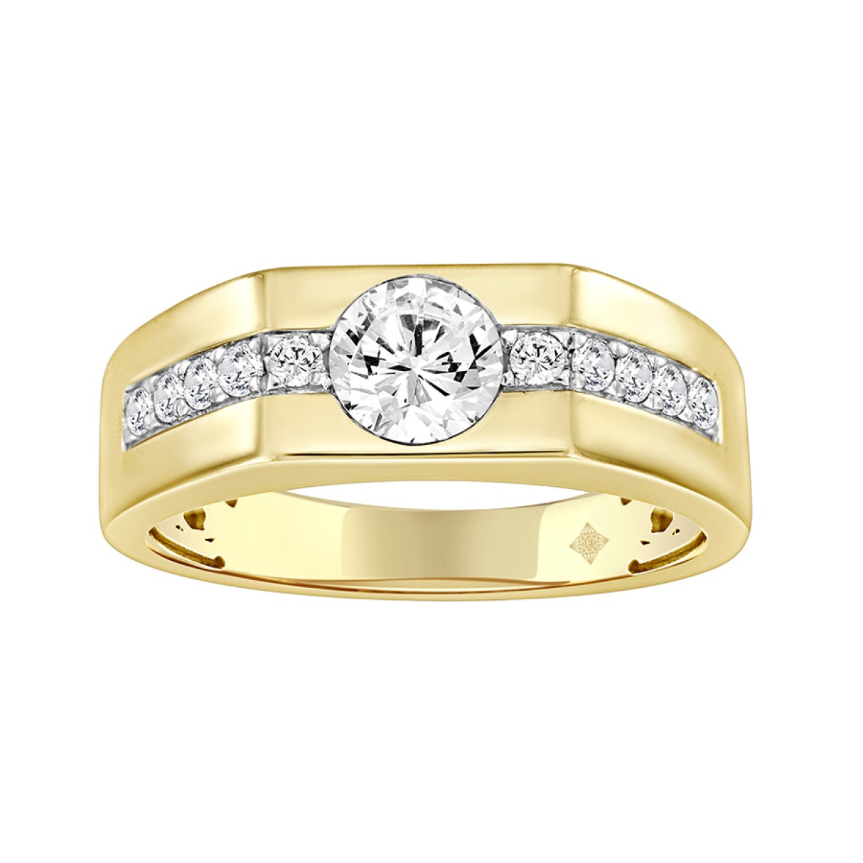 MEN’S RING 1CT ROUND DIAMOND 14K YELLOW GOLD (CENTER STONE ROUND DIAMOND 3/4CT )