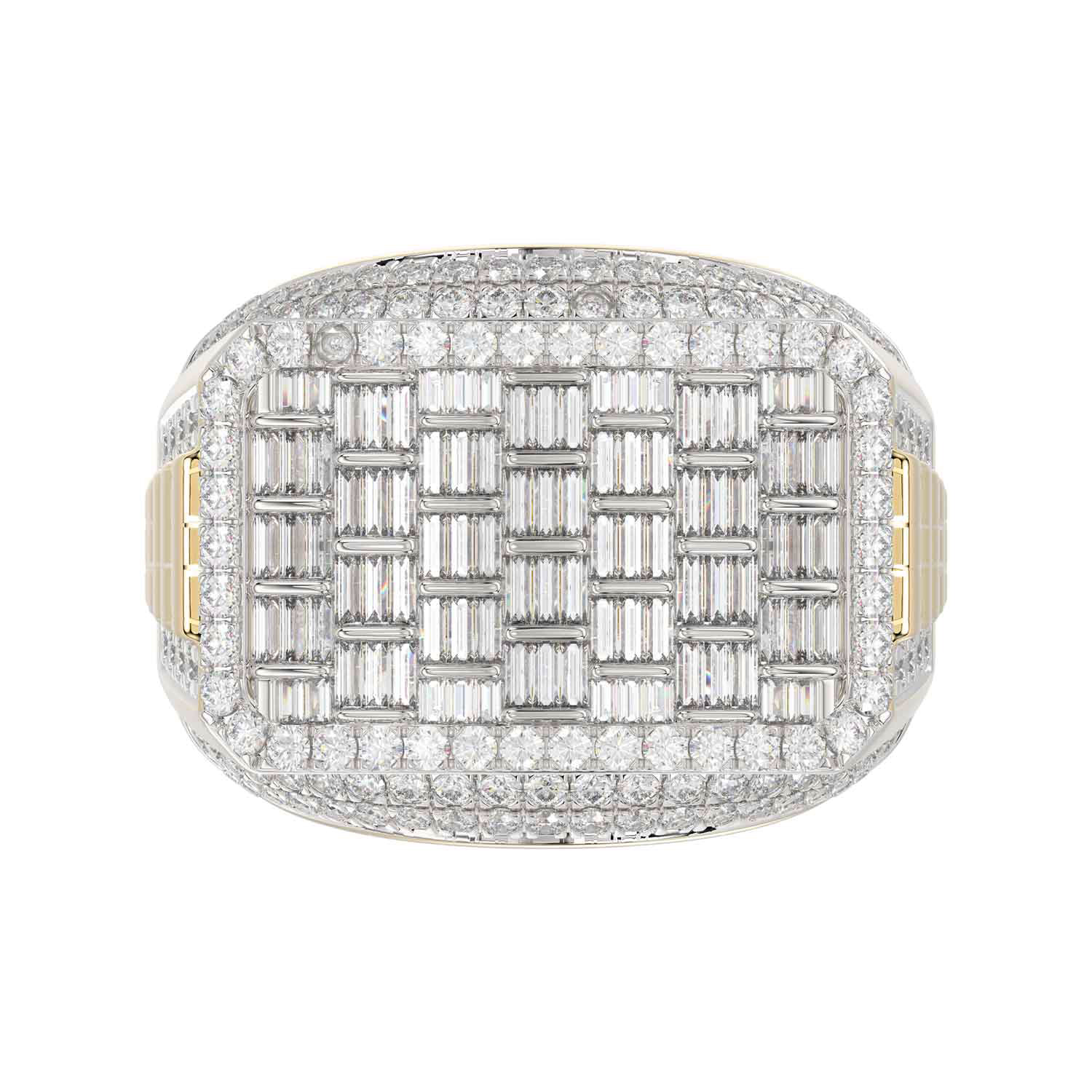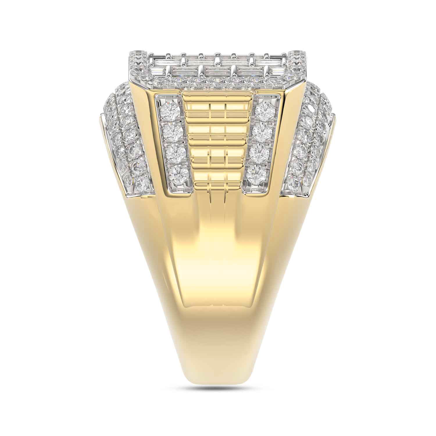MEN'S RING 2.75CT ROUND/BAGUETTE DIAMOND 10K YELLOW GOLD